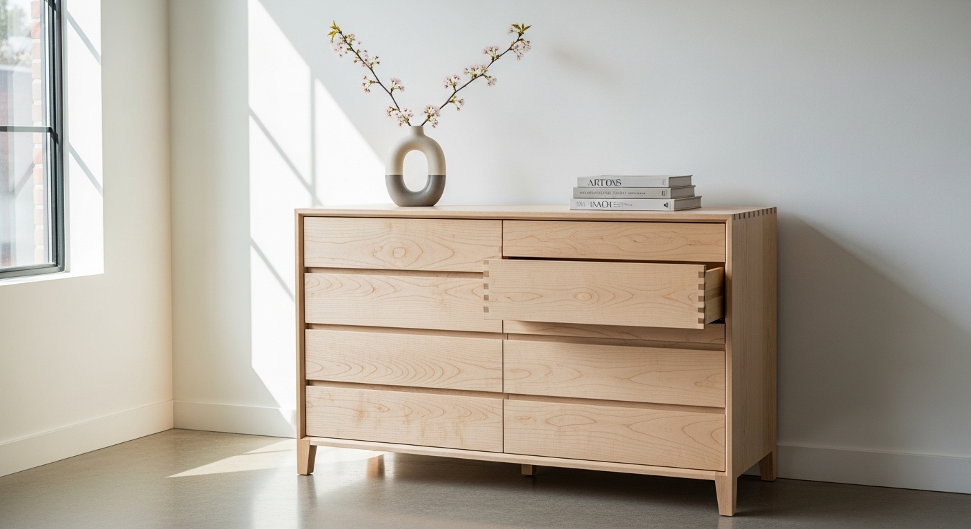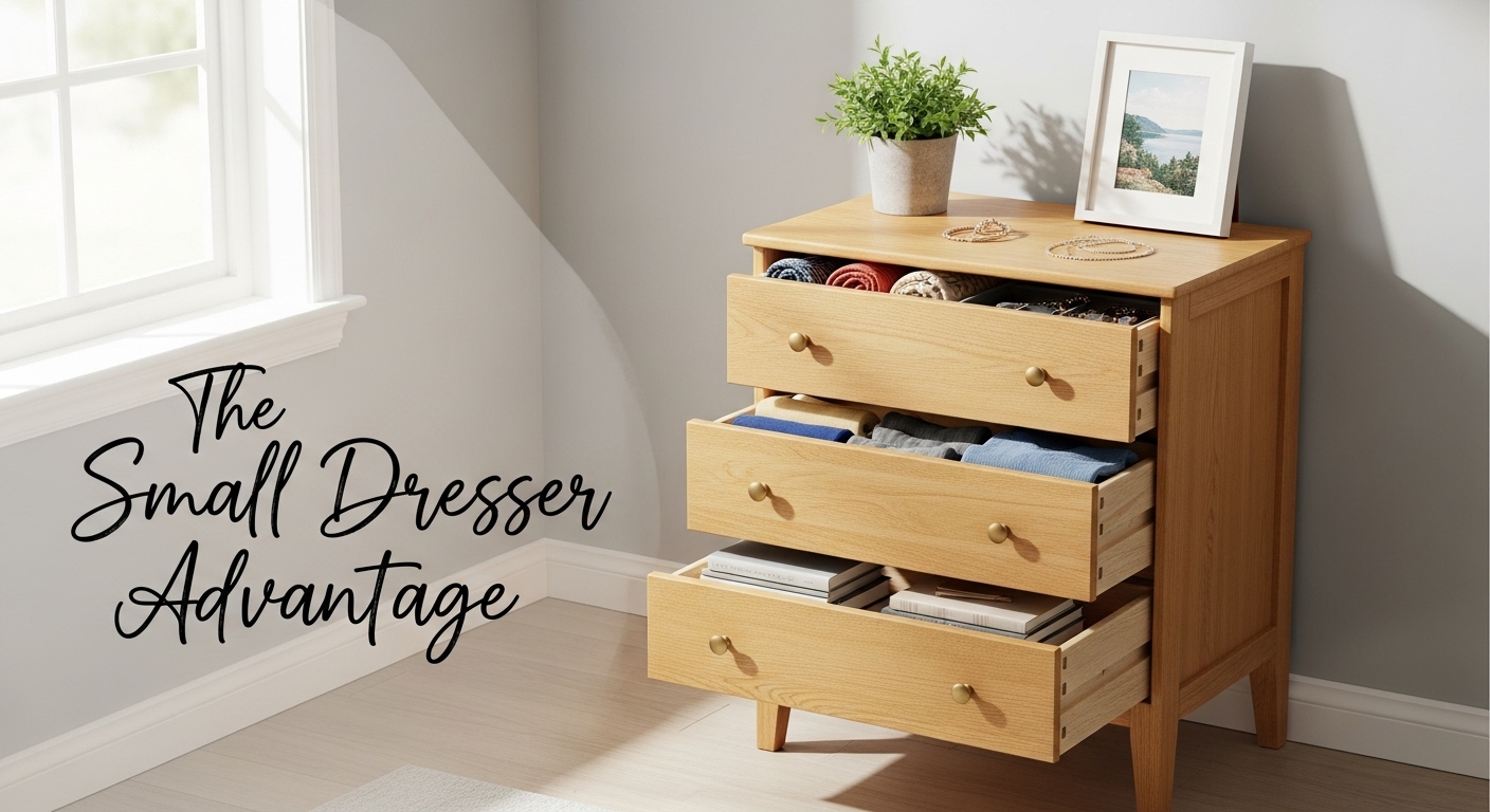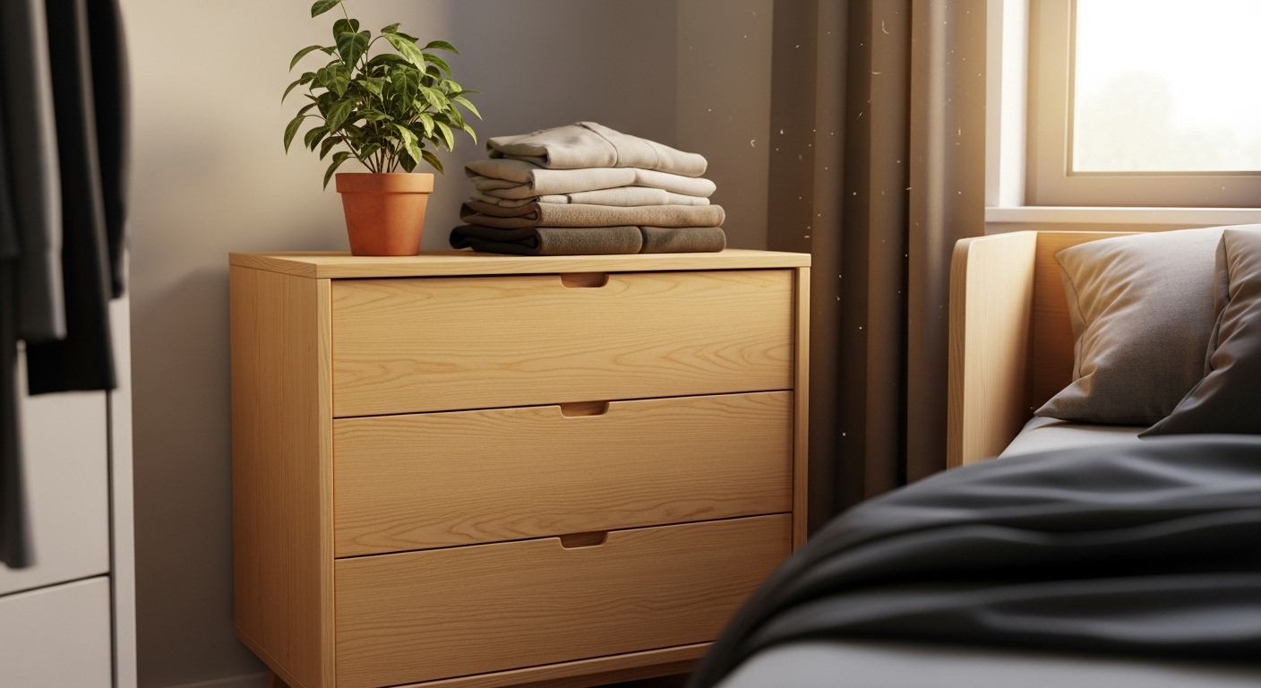 For small bedrooms or studio apartments, a tall dresser provides vertical storage without consuming much floor space. The white dresser variation enhances brightness and visual space, making compact areas feel open and organized.