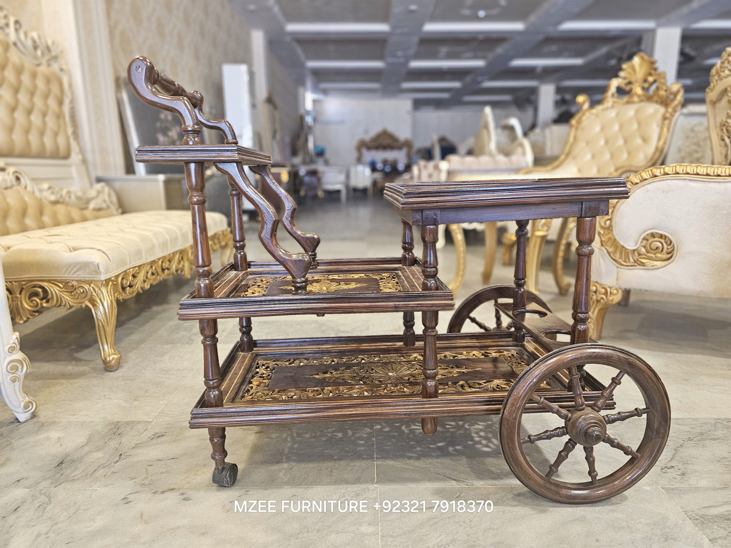 Our brand has over 20 years of woodworking expertise, specializing in luxury wooden furniture for Pakistani and international markets. Each Bar Cart is handcrafted in certified workshops, ensuring the highest quality standards. Raw materials are ethically sourced, with Sheesham and Kikar wood carefully selected for durability and grain beauty. Our in-house quality control team inspects every piece for polish, joint integrity, and finish consistency. This guarantees customers receive modern wooden furniture that not only looks premium but lasts for decades. By emphasizing authenticity, craftsmanship, and traceable sourcing, we deliver trust and satisfaction, ensuring buyers invest in a reliable home accessory that complements solid wood sofas and luxury interiors.