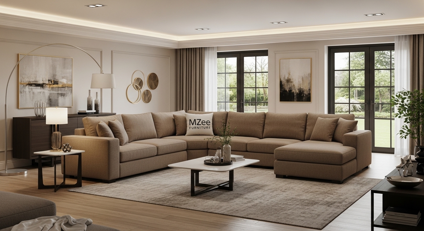 Mzee Modular Corner Sofa – If you want even more flexibility or anticipate rearranging rooms, the Mzee Modular Corner Sofa version expands the concept: configurable sections, extended chaise modules, and optional ottoman add-ons, all maintaining the premium wooden frame and upholstery finishes of the mzee sectional sofa.